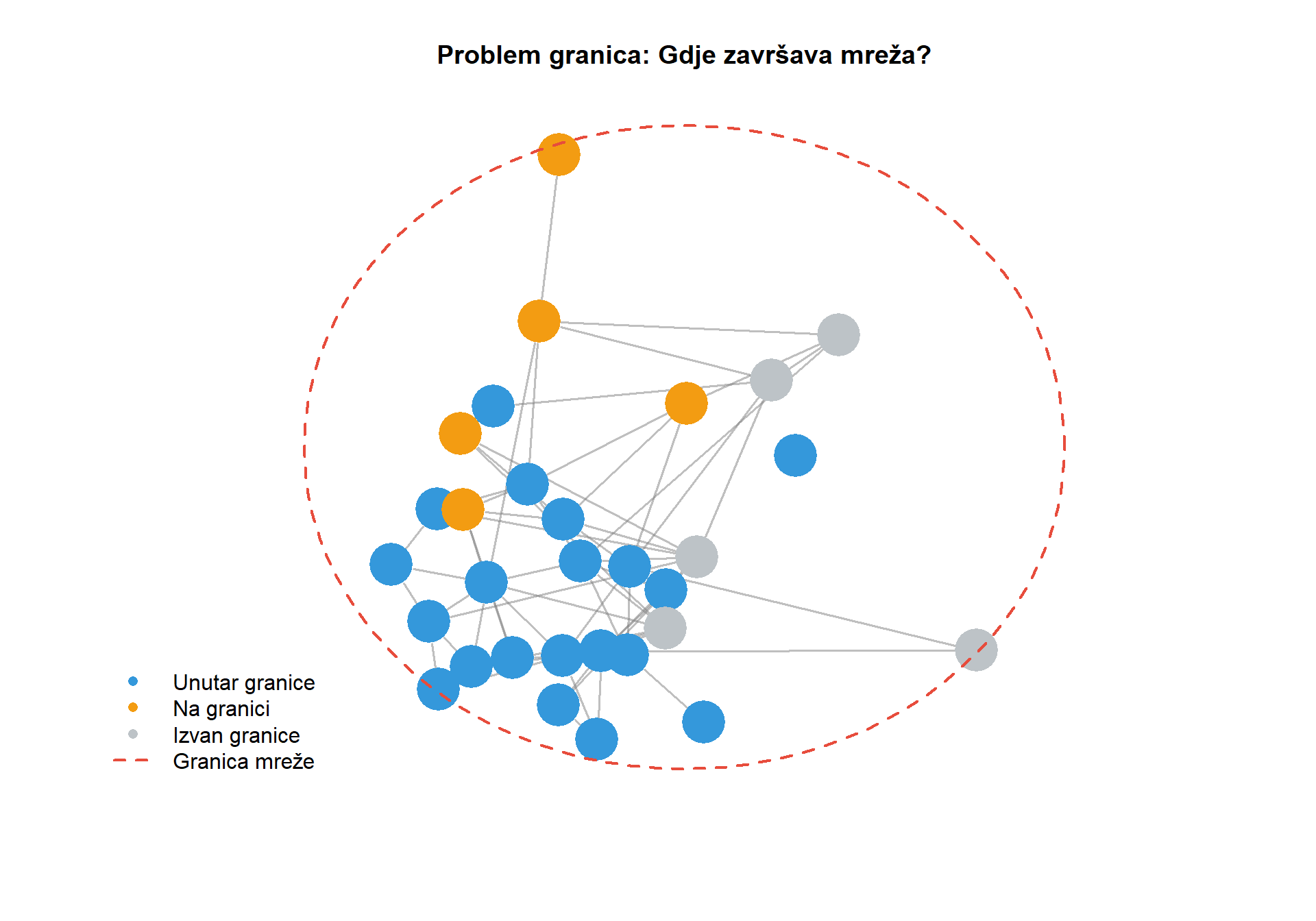 Metodološka rigoroznost u mrežnoj analizi zahtijeva kontinuiranu refleksiju o odlukama koje oblikuju istraživanje. Problem granica podsjeća da svaka mreža koja se analizira jest konstrukcija nastala iz istraživačevih odluka o tome što uključiti. Nedostajući podaci upozoravaju da podaci nikada nisu potpuni i da je potrebno razumjeti kako ta nepotpunost utječe na zaključke. Etički izazovi naglašavaju da iza svakog čvora i svake veze stoje stvarni ljudi čiju privatnost valja poštivati.