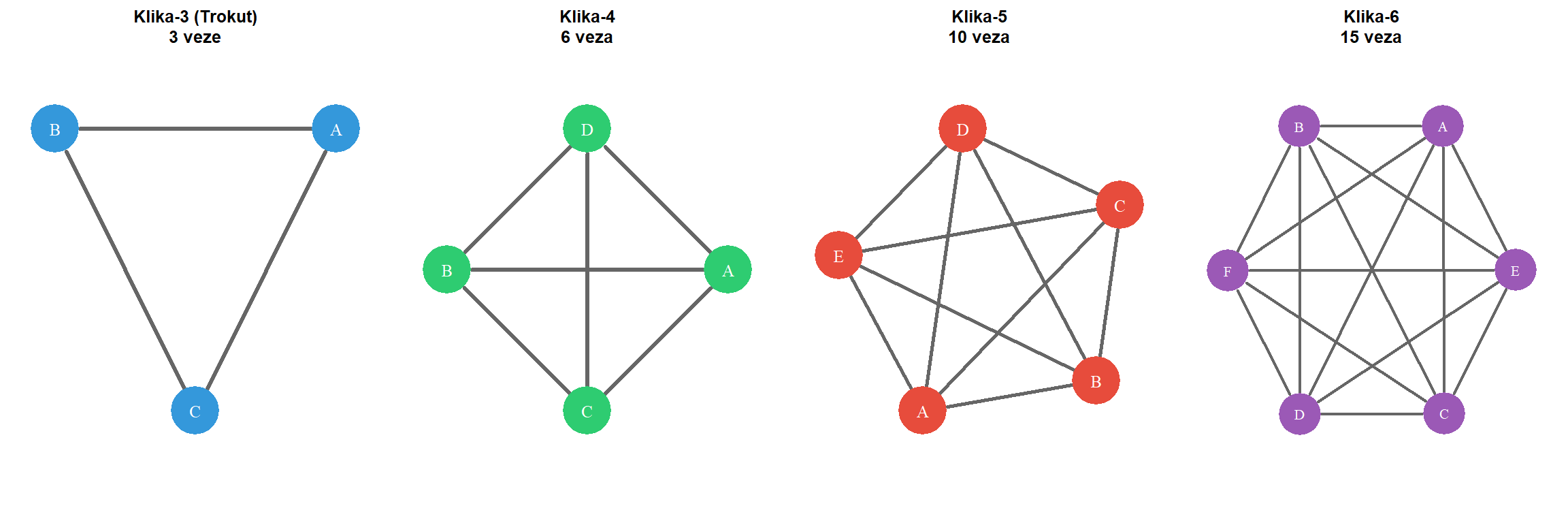 #| fig-cap: "Osnovni elementi mreže: čvorovi (prikazani krugovima) i veze (prikazane linijama) čine temeljnu strukturu svake mrežne analize."