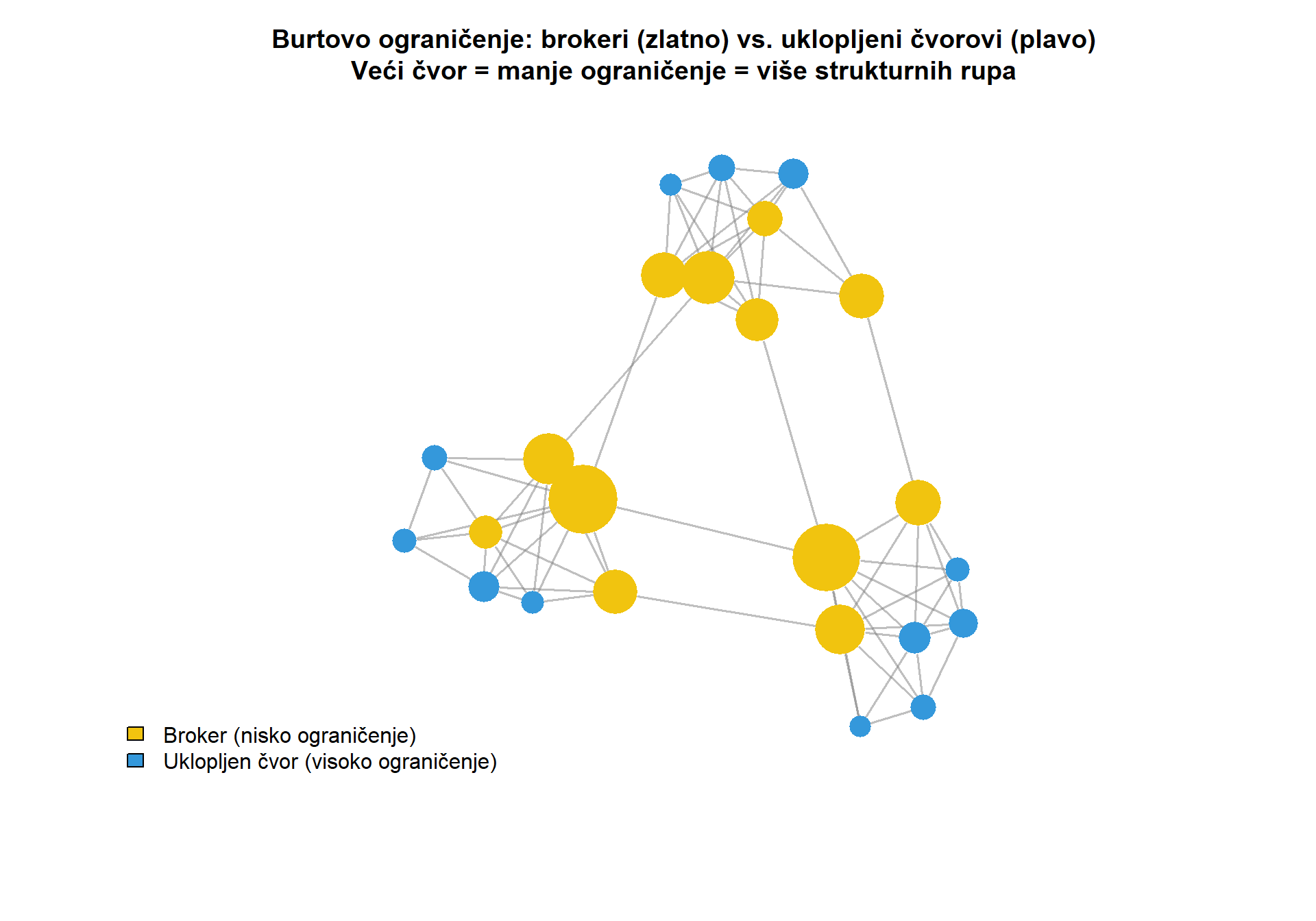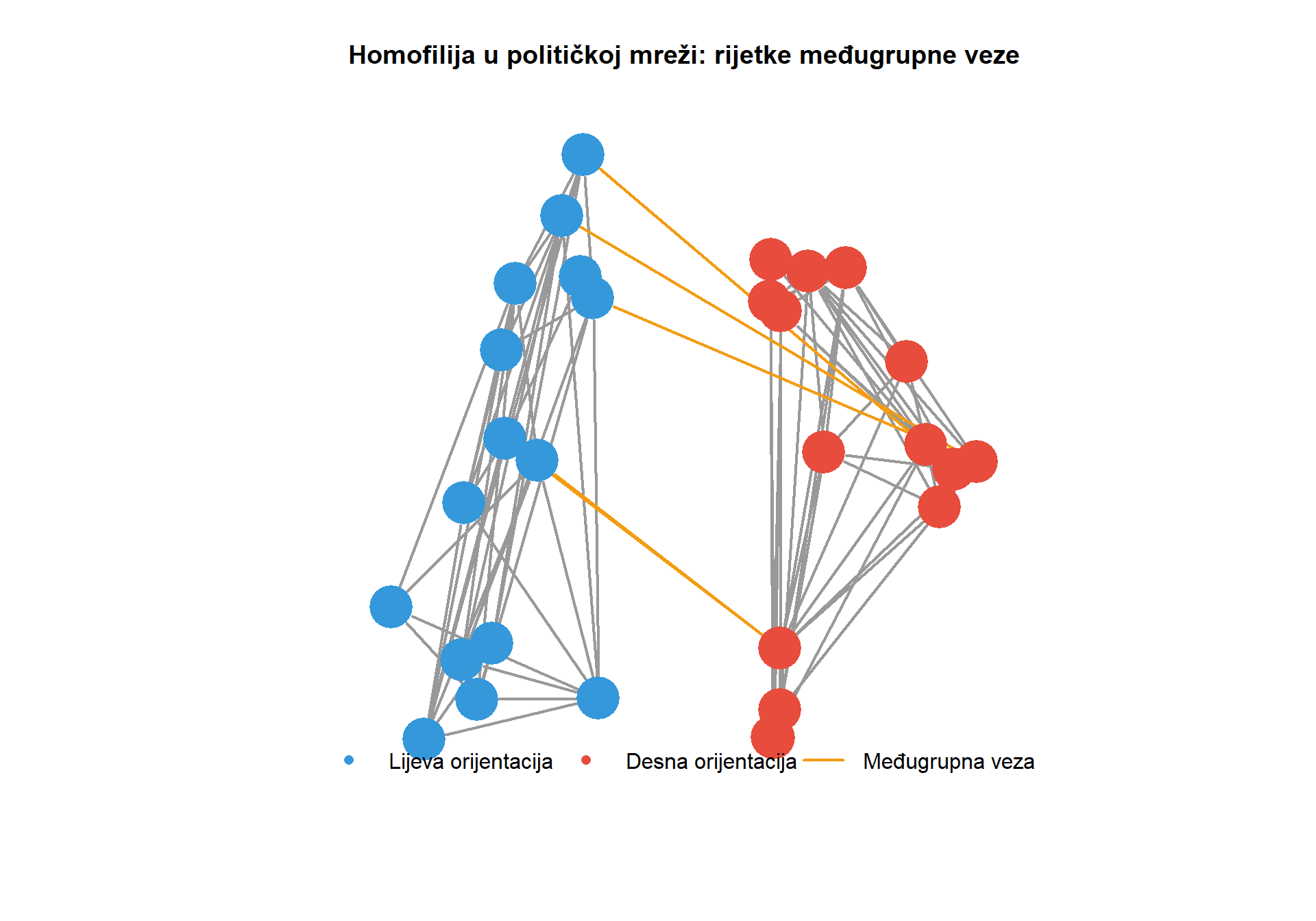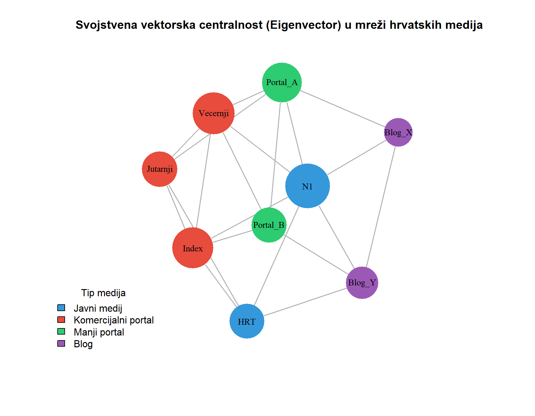 Zamislimo istraživačicu koja želi razumjeti kako su se dezinformacije o izbornim rezultatima proširile hrvatskim digitalnim prostorom u svega nekoliko sati. Pred njom su podaci o tisućama korisničkih računa i desetcima tisuća dijeljenih objava, no sama količina podataka ne otkriva ono što je zapravo ključno: strukturu odnosa kroz koju su se te poruke kretale. Tko je prvi podijelio spornu objavu? Koji su korisnici djelovali kao mostovi između zatvorenih ideoloških zajednica? Postoje li uski prolazi kroz koje je morala proći svaka informacija da bi dosegla širu javnost? Odgovori na ta pitanja ne nalaze se u atributima pojedinih korisnika, poput broja pratitelja ili učestalosti objavljivanja, već u samoj arhitekturi veza među njima. Upravo tu počinje analiza društvenih mreža kao metodološki pristup.
