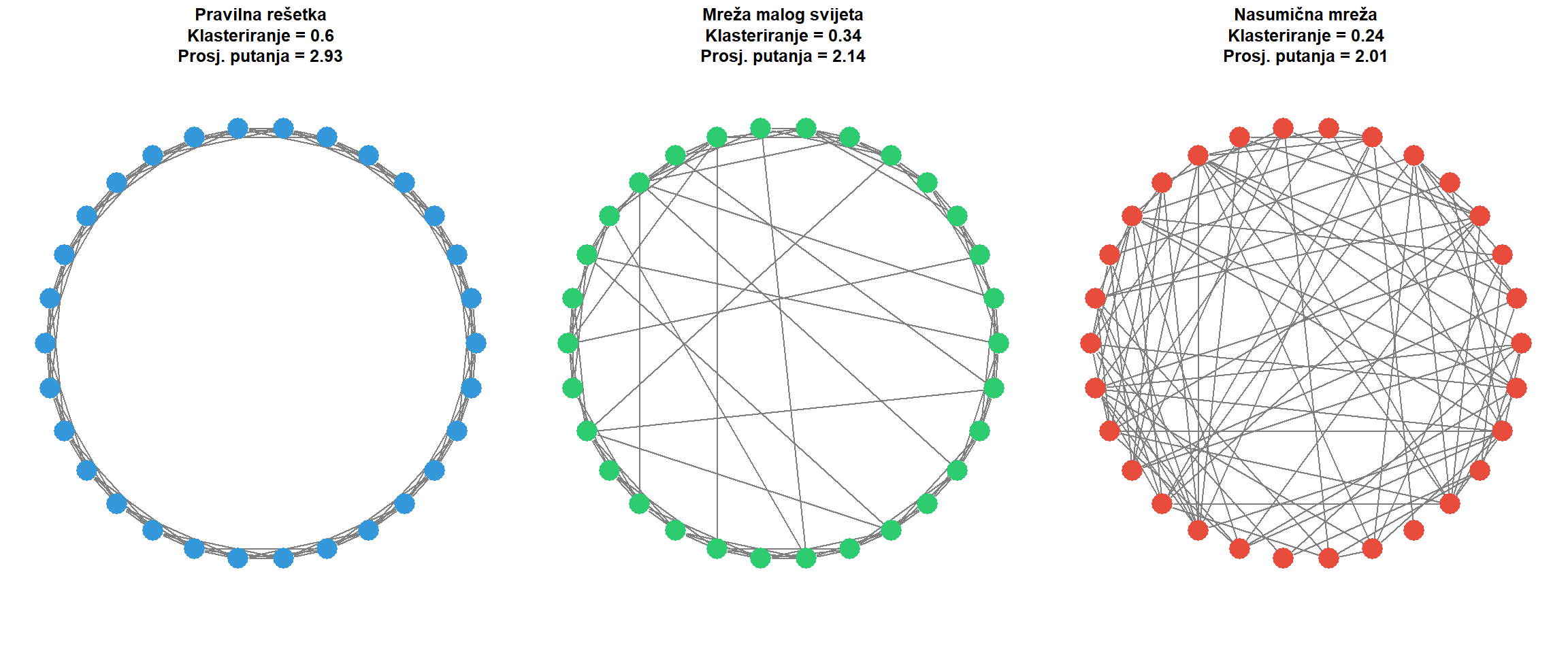 "Koeficijent klasteriranja", "Prosječna duljina putanje",
