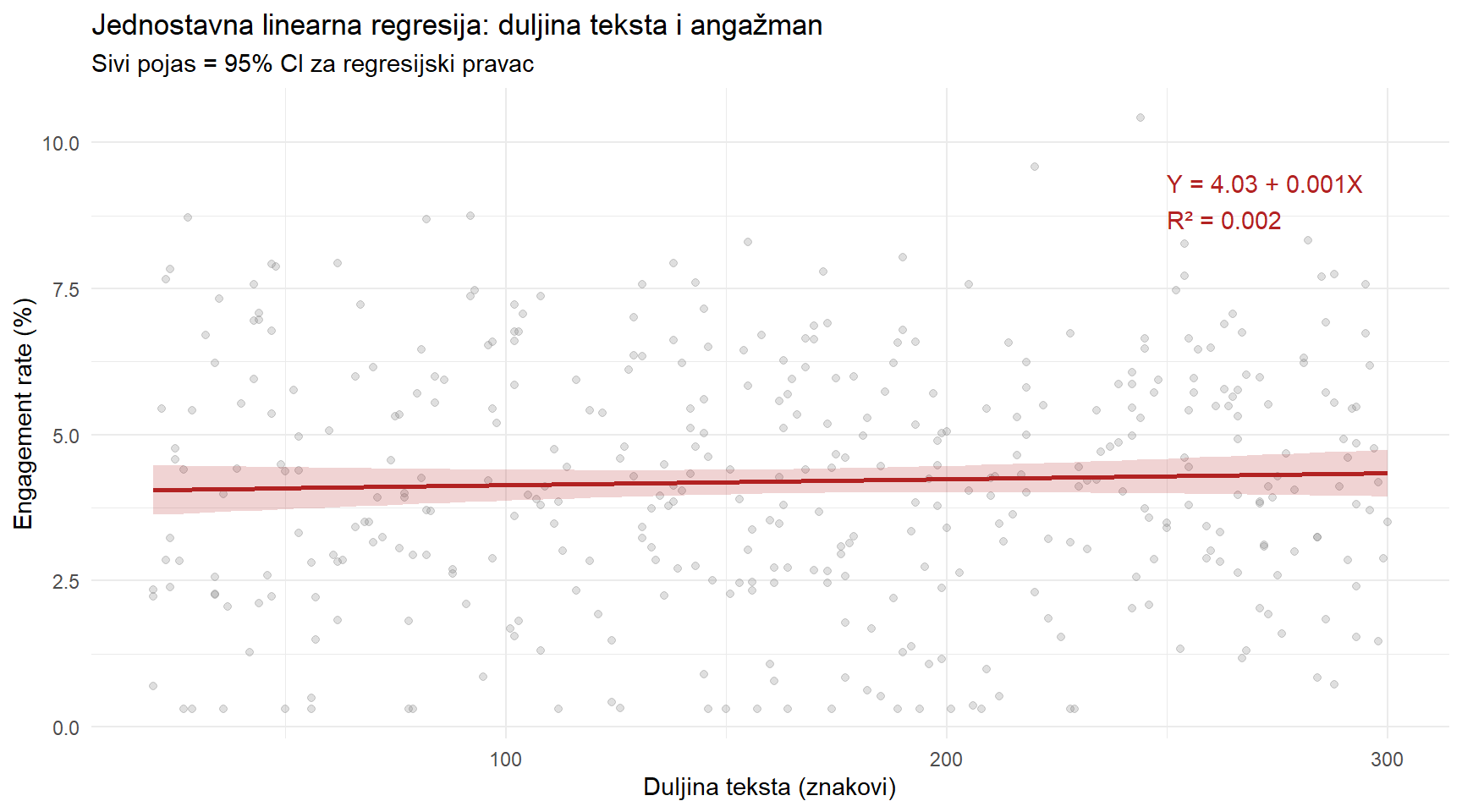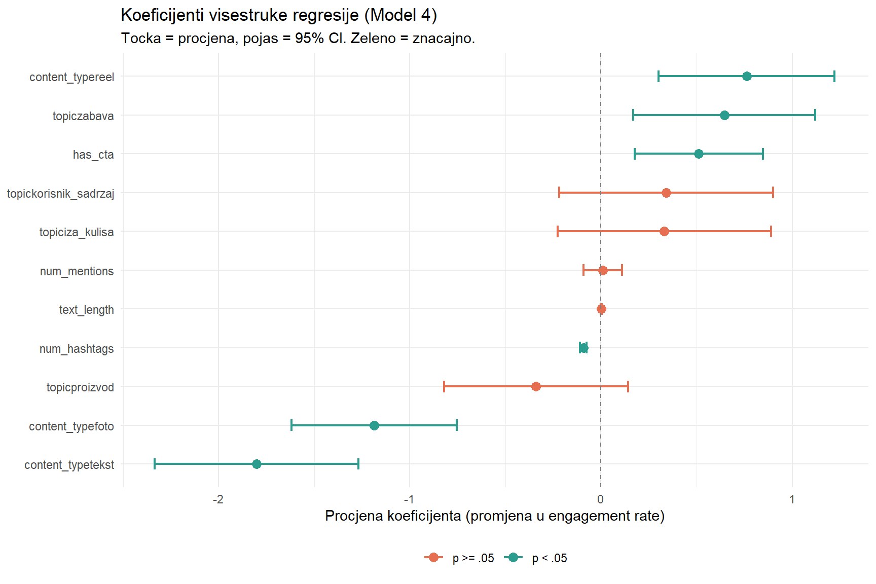 cat(" engagement rate se mijenja za ", round(koef[2], 4), " postotnih bodova.\n\n", sep = "") engagement rate se mijenja za 0.001 postotnih bodova.